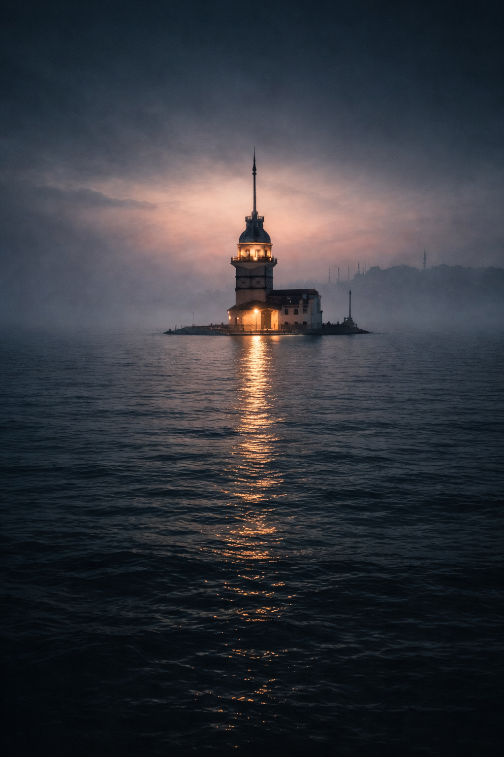 Deniz sakin aktı, kule dimdik durdu.
